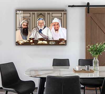 תמונה מעוצבת של בבא סאלי, רבי יעקב והבן איש חי על זכוכית או קנבס