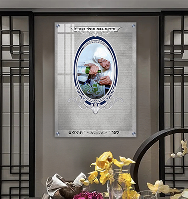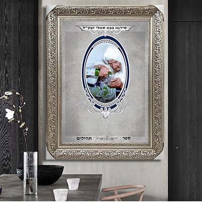 תמונה של בבא סאלי המכניסה קדושה ואור לבית או למשרד! התמונה משלבת את בבא סאלי מוזג עראק, על רקע כיתוב של ספר תהילים. בבא סאלי – רבי ישראל אבוחצירא , צדיק יסוד עולם ואחד מגדולי ישראל שנפטר בשנת 1984, והשאיר חותם גדול מבחינה רוחנית, דתית ולאומית עד היום. בבא סאלי הוא בן משפחה בשושלת משפחת אבוחצירא הידועה ברבנים וצדיקים רבים לאורך הדורות. דמותו של בבא סאלי נמצאת בבתים רבים ומשדרגת כל חלל שבו היא נמצאת. תמונה או ציור של הבבא סאלי בבית או במשרד משרה שפע, קדושה, ברכה והצלחה. ניתן למצוא אצלנו תמונות וציורים רבים של בבא סאלי בסגנונות שונים באיכות גבוהה. ניתן לבחור הדפסה על זכוכית מחוסמת 6 מ"מ עובי, אקסטרה קליר. הזכוכית יציבה ובטיחותית ומודפסת בטכנולוגיית UV מתקדמת או הדפסה על קנבס איכותי לבחירתכם. במידת הצורך, ניתן להוסיף כל כיתוב אישי שתרצו על גבי התמונה כחלק מההדפסה על קנבס או זכוכית. למידע נוסף ניתן לפנות אלינו בטלפון, בווצאפ או במייל ונשמח לעזור.