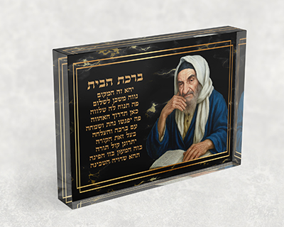 בלוק זכוכית אקרילית של בבא סאלי בשילוב ברכת העסק – בגווני שחור וזהב