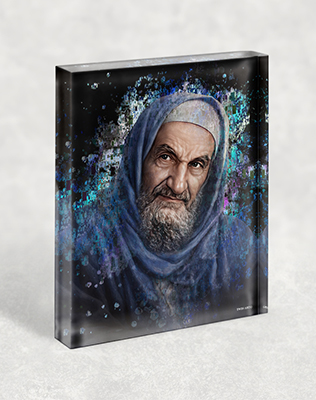 בלוק זכוכית אקרילי עם ציור גרפיטי צבעוני של בבא סאלי