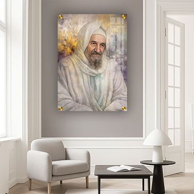 ציור דיוקן של בבא סאלי על רקע גרפיטי צבעוני על קנבס או זכוכית