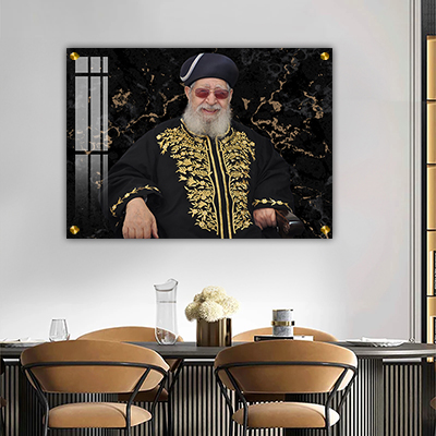 תמונה של הרב עובדיה יוסף המכניסה קדושה ואור לבית או למשרד! בתמונה הרב עובדיה מחייך ומשלבת רקע שיש בגווני שחור וזהב למראה אמנותי. מר"ן עובדיה יוסף, אחד מגדולי הדור של העם היהודי כיהן בתפקידי מפתח מגוונים לאורך שנות פעילותו, וביניהם הרב הראשי לישראל, מנהיג מפלגת ש"ס ופוסק הלכה. הרב עובדיה יוסף נפטר בשנת 2013, והשאיר חותם גדול מבחינה רוחנית, דתית ולאומית עד היום. תמונה או ציור של הרב עובדיה יוסף בבית או במשרד משרה שפע, קדושה, ברכה והצלחה. ניתן למצוא אצלנו תמונות וציורים רבים של הרב עובדיה יוסף בסגנונות שונים באיכות גבוהה. ניתן לבחור הדפסה על זכוכית מחוסמת 6 מ"מ עובי, אקסטרה קליר. הזכוכית יציבה ובטיחותית ומודפסת בטכנולוגיית UV מתקדמת או הדפסה על קנבס איכותי לבחירתכם. במידת הצורך, ניתן להוסיף כל כיתוב אישי שתרצו על גבי התמונה כחלק מההדפסה על קנבס או זכוכית. למידע נוסף ניתן לפנות אלינו בטלפון, בווצאפ או במייל ונשמח לעזור.