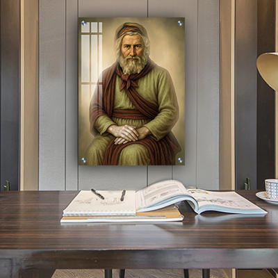 הקומפוזיציה מתמקדת בדמותו של הצדיק בלבד, על רקע נקי וקלאסי בגוונים עדינים.