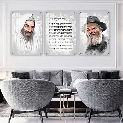 סט תמונות של בבא סאלי, הרבי מלובביץ' וברכת מזמור לתודה – על זכוכית או קנבס