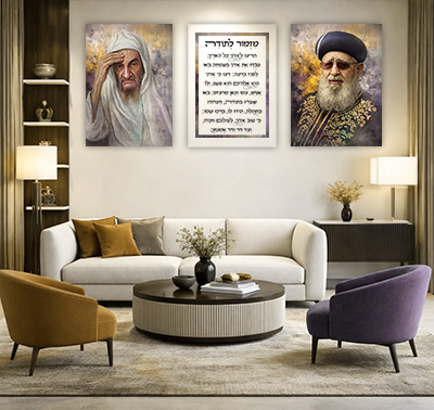 סט שלישיית תמונות צבעוניות של רבנים ומזמור לתודה על קנבס או זכוכית