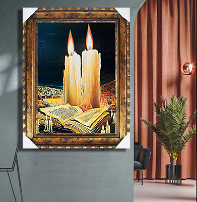2016 – ציור של נרות וספרי תורה על רקע הכותל המערבי
