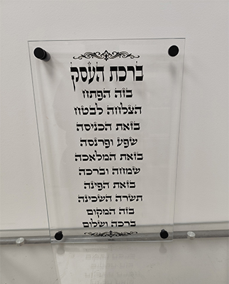 ברכת העסק מודרנית על זכוכית שקופה – עיצוב עם נוכחות ואמונה
