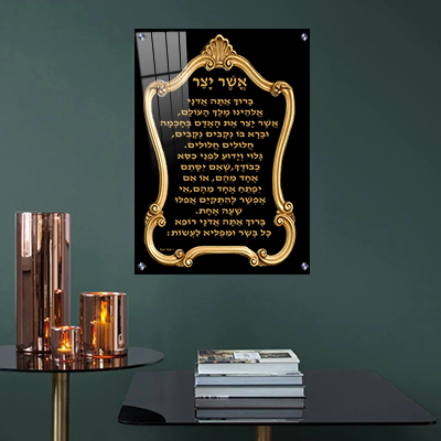 ברכת אשר יצר עם מסגרת זהב – עיצוב יוקרתי לתפילה יומיומית
