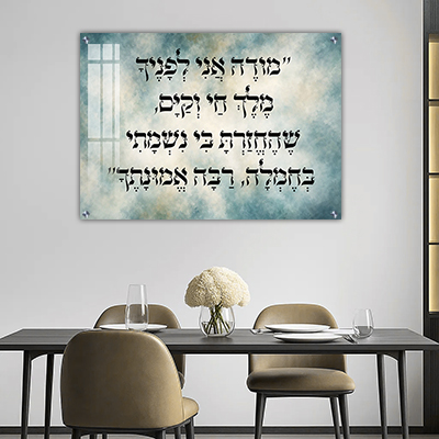 2964 – תמונה עם פסוק: "מודה אני לפניך…" להדפסה על זכוכית או קנבס
