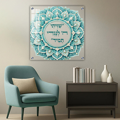מנדלה מעוצבת עם הפסוק שויתי ה' לנגדי תמיד על זכוכית שקופה