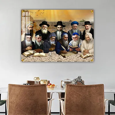 תמונת רבנים על רקע הכותל – חיבור של דורות על קנבס או זכוכית