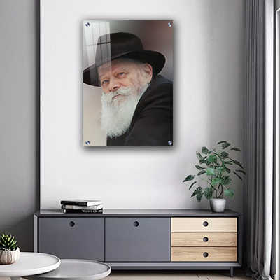 דיוקן מרגש של הרבי מליובאוויטש במבט מלא חוכמה והשראה. תמונה אידיאלית להשראת רוחניות ותחושת עומק בכל חלל.