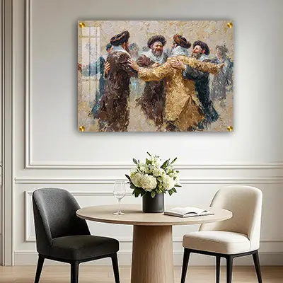 ציור צבעוני של חסידים רוקדים להדפסה על קנבס או זכוכית