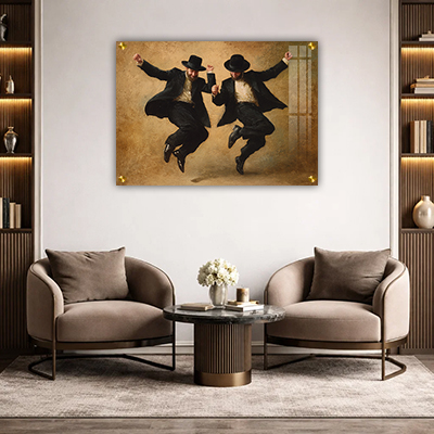 ריקוד חסידי שמח בעיצוב אמנותי להדפסה על קנבס או זכוכית