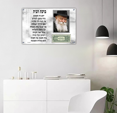 תמונה מרהיבה של הרבי מליובאוויטש, מלווה בברכת הבית ומקום ייחודי להניח את הדולר המקורי. ברכת הבית של הרבי מציעה תחושת ברכה והצלחה בכל תחום. התמונה מוסיפה אנרגיה חיובית ומזמינה שפע ושקט לבית.