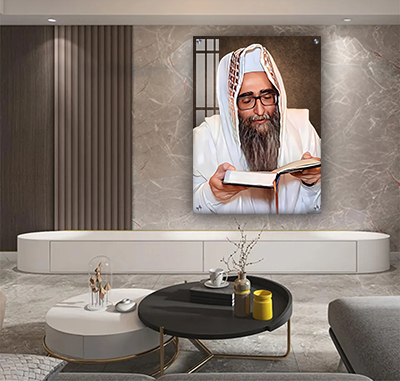 הצייר הדגיש את פניו של הרב תוך שימוש בגוונים חמימים ובקומפוזיציה מדויקת. כל פרט ביצירה מעביר כבוד לדמות ומאפשר לצופה להתחבר לאור הרוחני שמלווה את הרב.