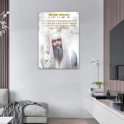 תמונה של הרב יאשיהו פינטו עם ברכת הבית על קנבס או זכוכית