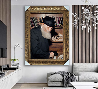 418 – תמונה של הרבי מליובאוויטש על רקע ארון ספרים