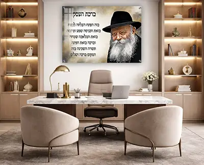 ציור של הרבי מליובאוויטש בשילוב ברכת העסק יוצר חיבור ישיר בין עולם הרוח לבין עולם העשייה. דמותו של הרבי מעניקה תחושת ביטחון, הנהגה וברכה, וברכת העסק משתלבת בעיצוב הרמוני שמדגיש הצלחה ושפע.