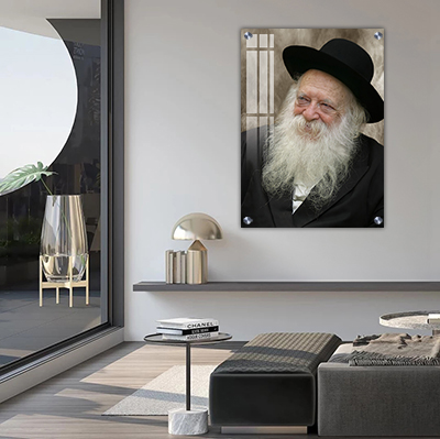 5057 – תמונה מעוצבת של הרב חיים קנייבסקי מחייך להדפסה על קנבס או זכוכית מחוסמת