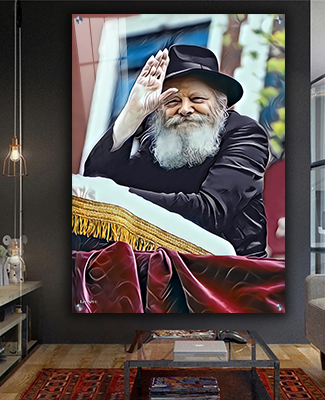 תמונה של הרבי מליובאוויטש – ניתן לבחור הדפסה על זכוכית מחוסמת 6 מ"מ עובי, אקסטרה קליר. הזכוכית יציבה ובטיחותית ומודפסת בטכנולוגיית UV מתקדמת או על קנבס איכותי לבחירתכם.