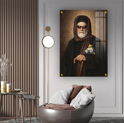 השילוב בין הדמות ההיסטורית לבין הסגנון האמנותי יוצר תמונה בעלת נוכחות רוחנית שמוסיפה לחלל תחושת מסורת, אמונה וכבוד לצדיקי ישראל.