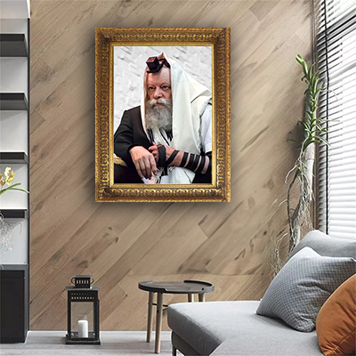568 – תמונה של הרבי מליובאוויטש עם טלית ותפילין להדפסה על קנבס או זכוכית