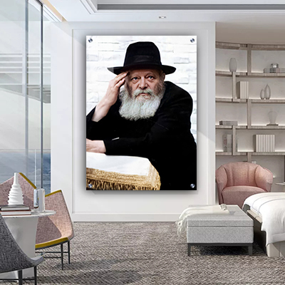 602 – תמונה של הרבי מליובאוויטש נשען על הסטנדר להדפסה על קנבס או זכוכית