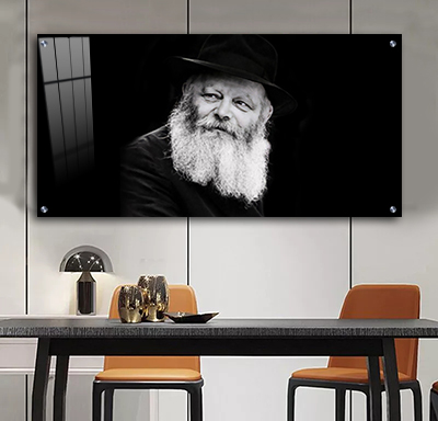 605 – תמונה מלבנית של הרבי מליובאוויטש מביט הצידה בשחור לבן על זכוכית או קנבס