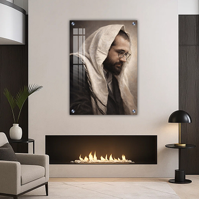 השילוב בין דיוקן רוחני לבין עיצוב אמנותי ברור יוצר מוקד חזק שמכניס לחלל תחושת קדושה והשראה יומיומית.