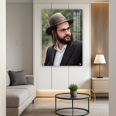 ניתן להדפיס את היצירה על קנבס למראה חמים וטבעי. אפשר גם לבחור זכוכית מחוסמת או פרספקס (זכוכית אקרילית) להדגשת עומק, ברק וחדות. כל אפשרות שומרת על האיזון העדין שבין הדמות לרקע.