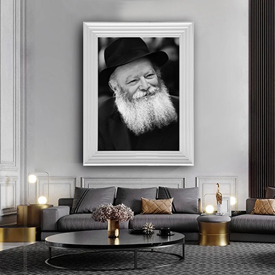 614 – תמונת פנים של הרבי הרבי מחייך בשחור לבן על קנבס או זכוכית