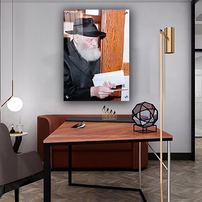 תמונה של הרבי מליובאוויטש – ניתן לבחור הדפסה על זכוכית מחוסמת 6 מ"מ עובי, אקסטרה קליר. הזכוכית יציבה ובטיחותית ומודפסת בטכנולוגיית UV מתקדמת או על קנבס איכותי לבחירתכם.