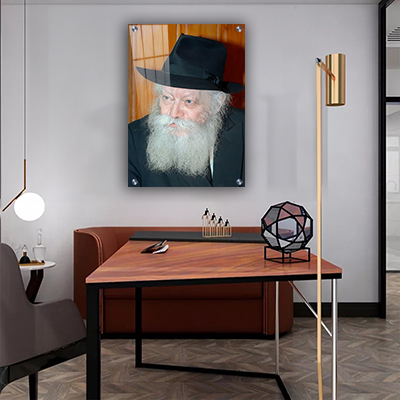 תמונה של הרבי מליובאוויטש – ניתן לבחור הדפסה על זכוכית מחוסמת 6 מ"מ עובי, אקסטרה קליר. הזכוכית יציבה ובטיחותית ומודפסת בטכנולוגיית UV מתקדמת או על קנבס איכותי לבחירתכם.
