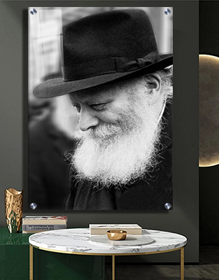 709 – תמונה של הרבי מליובאוויטש מחייך בשחור לבן