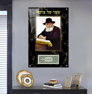 של הרבי. תמונתו של הרבי מליובאוויטש  עם מקום לדולר המקורי של הרבי, היא סגולה לברכה והצלחה לבית ולמשרד, ובעלת ערך רב עבור מי שרוכש אותה. תמונה של הרבי מליובאוויטש – הדפסה על זכוכית מחוסמת 6 מ"מ