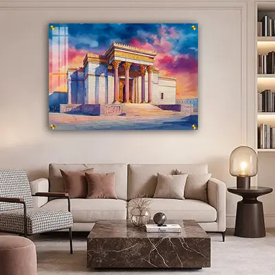 8039 – ציור צבעוני של בית המקדש בסגנון צבעי מים על זכוכית או קנבס