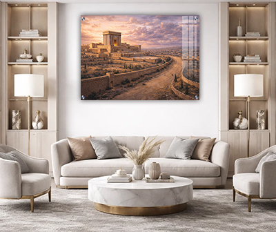 היצירה מתחברת גם לגרסאות נוספות של בית המקדש בעיצובים שונים, ולכן ניתן ליצור קיר נושא מרשים. השילוב בין בית המקדש, חומות ירושלים והחיים ברחבה יוצר מוקד רוחני ועיצובי שמעניק לבית תחושת עוצמה והשראה.
