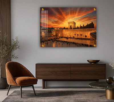 8536 – ציור של הכותל עם בית המקדש בשקיעה עוצמתית על קנבס או זכוכית