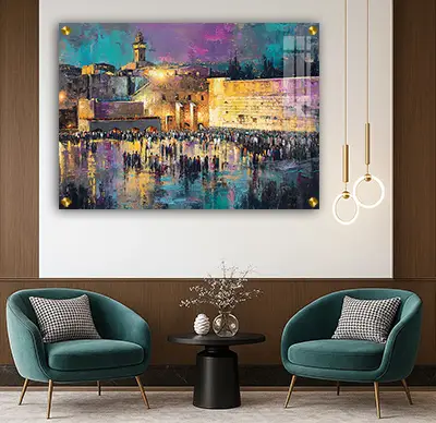 ציור של הכותל בסגנון צבעי מים מתאים למי שמחפש אמנות עם אמירה רוחנית אך גם צבעוניות נועזת. הוא מעניק לסלון, לפינת אוכל או למשרד מוקד מרשים שמושך את העין מבלי להעמיס.