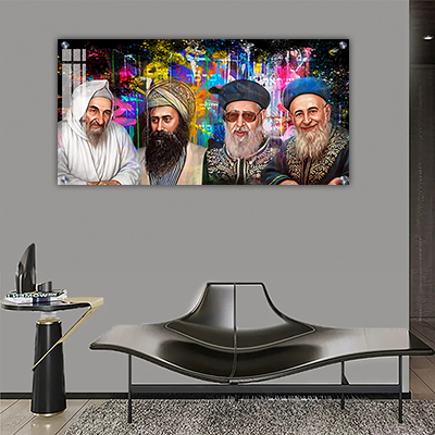 9101 – תמונת פופ ארט מודרנית של רבנים שונים על קנבס או זכוכית מחוסמת