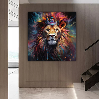 A-105 ציור גרפיטי מיוחד של אריה עם כתר על קנבס או זכוכית