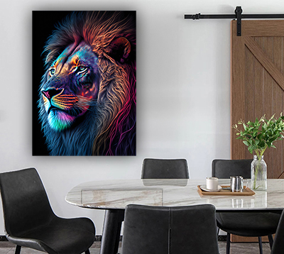 A-122 תמונה של אריה צבעוני לסלון או חדר שינה על קנבס או זכוכית