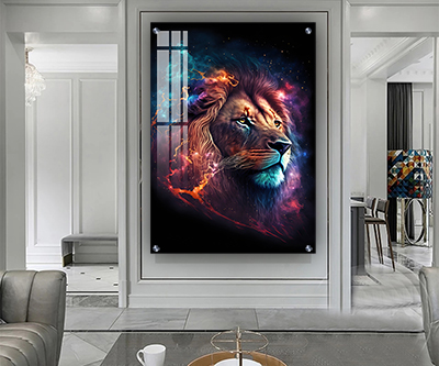 A-123 תמונה של אריה צבעוני לסלון או חדר שינה על קנבס או זכוכית