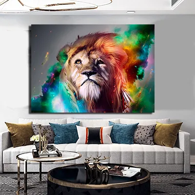 A-14 ציור מיוחד של אריה צבעוני על קנבס או זכוכית