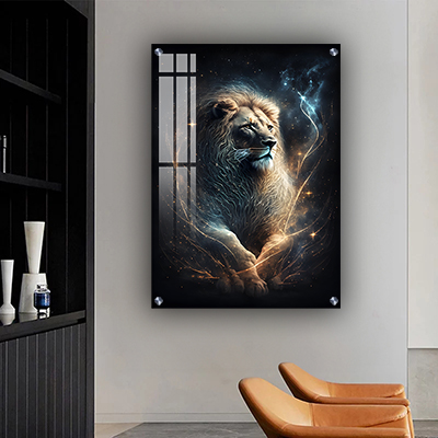A-142 ציור של אריה לסלון או חדר שינה על קנבס או זכוכית מחוסמת