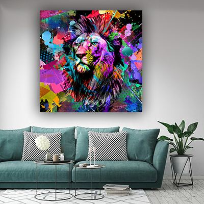A-161 ציור גרפיטי של פני אריה צבעוני להדפסה על קנבס או זכוכית