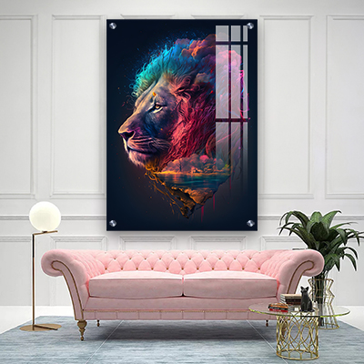 A-171 ציור של אריה לסלון או חדר שינה על קנבס או זכוכית