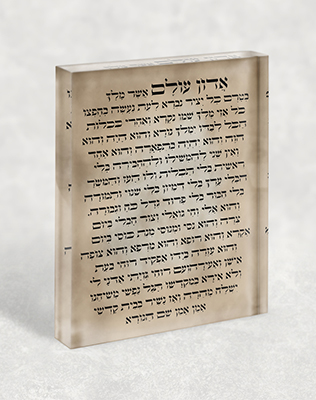 תמונה עם פיוט "אדון עולם" על זכוכית או קנבס