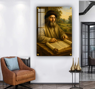 ניתן לתלות את הציור בבית, בפינת לימוד, בבית כנסת, משרד או חדר עבודה. הדמות מקרינה שקט פנימי ומעודדת התבוננות. השילוב עם הרקע הירוק הופך את התמונה לנקודת אור בכל קיר.